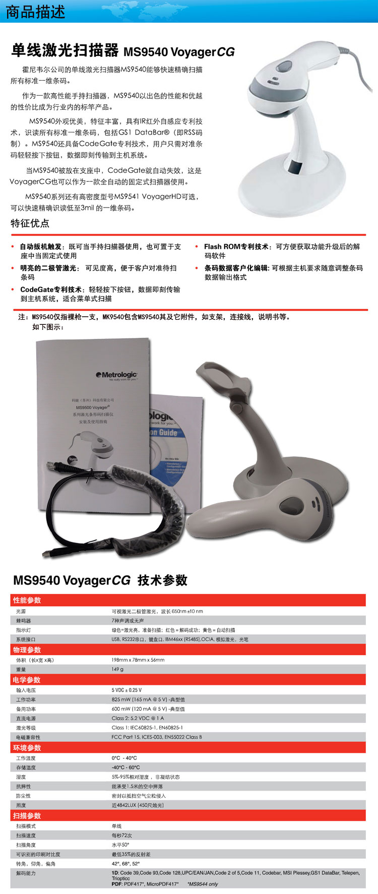 霍尼韋公司的單線激光掃描器MS9540能夠快速精確掃描所有標(biāo)準(zhǔn)一維條碼。作為一款高性能手持掃描器,MS9540以出色的性能和有約的性價(jià)比成行業(yè)內(nèi)的產(chǎn)品。