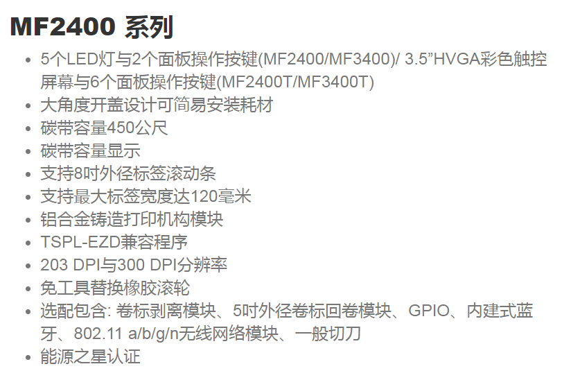 5個(gè)LED燈與2個(gè)面板操作按鍵(MF2400/MF3400)/ 3.5”HVGA彩色觸控屏幕與6個(gè)面板操作按鍵(MF2400T/MF3400T)