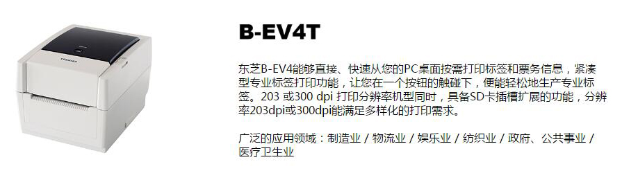 東芝B-EV4能夠直接、快速從您的PC桌面按需打印標簽和票務(wù)信息,緊湊型專業(yè)標簽打印功能,讓您在一個按鈕的觸碰下,便能輕松地生產(chǎn)專業(yè)標簽。